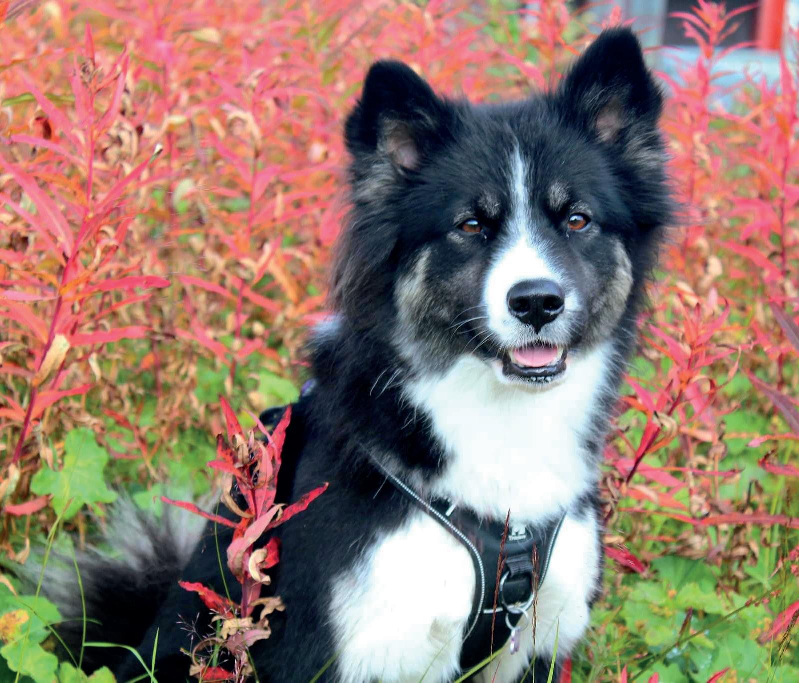 merke til hunden før ho ser meg. Føniks pleier å ha den effekten på folk. Eg veit ikkje om det er den imponerande pelsen eller dei blå augo hans som gjer han så iaugnefallande, men same kvar me er, så er det alltid nokon som lurer på kva slags hund han er. Og eg svarar som mange gonger før at han er ein yakutian laika og at rasen er ikkje er så kjend i Norge. Enkelte synst han liknar på ein litt stor lapphund, medan andre trur dei ser på ein litt langhåra border collie. Andre igjen lurer på om han er ein huskymiks. Eg skjønnar dei godt, for eg kjende heller ikkje til denne rasen for tre år sidan.