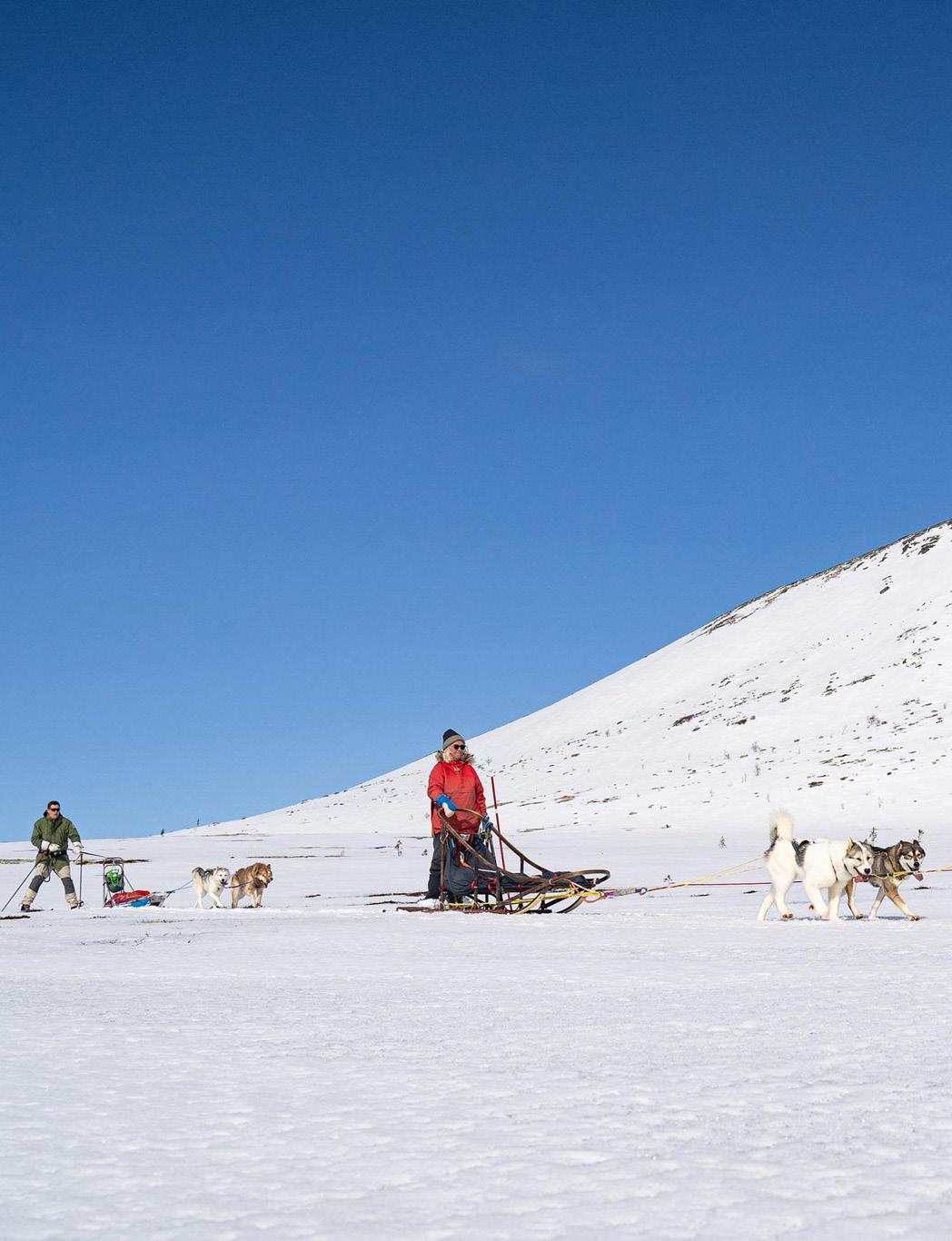 Vi kjøpte grønlandshund til jul, og denne dagen hadde vi sett fram til lenge: Dagen med gode meldinger fra meteorologene. Det var som om også hunden kjente høytrykket røske i pelsen. Vi hadde lagt bak oss den hardeste kneiken av vinteren med kulderekorder og uframkommeligesnømengder. Foran oss lå de drivende hvite fjellviddene under knallblå himmel og påskegul sol.