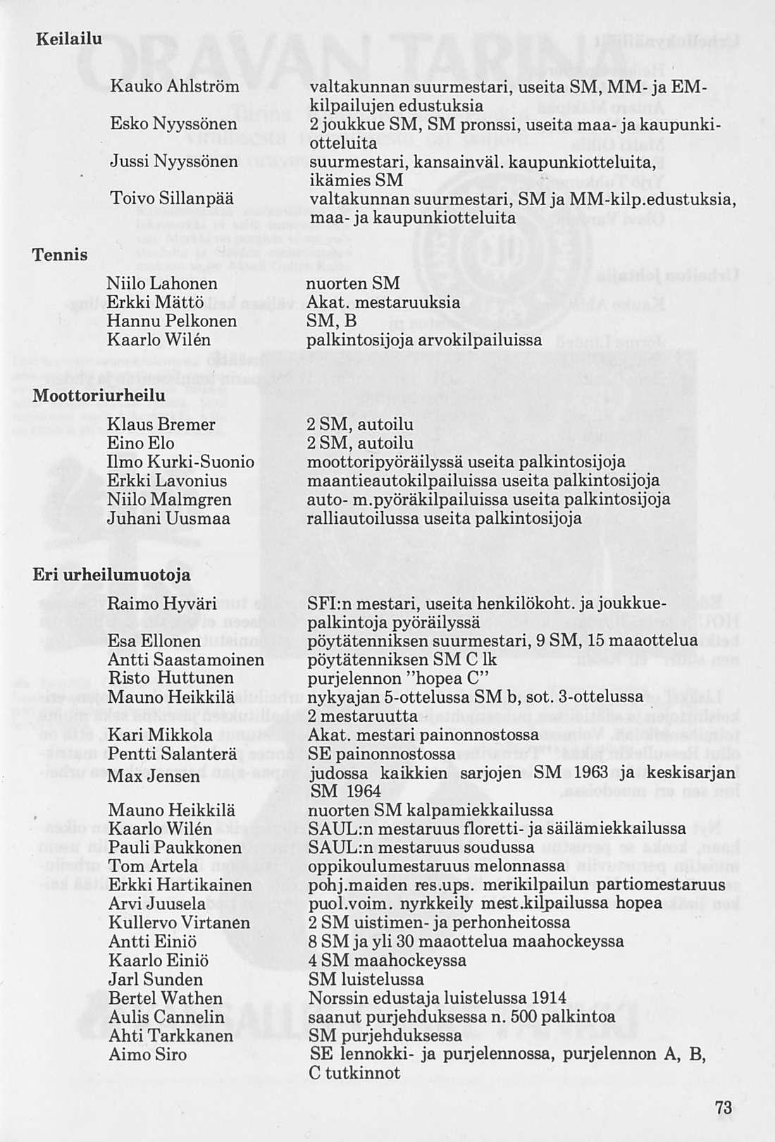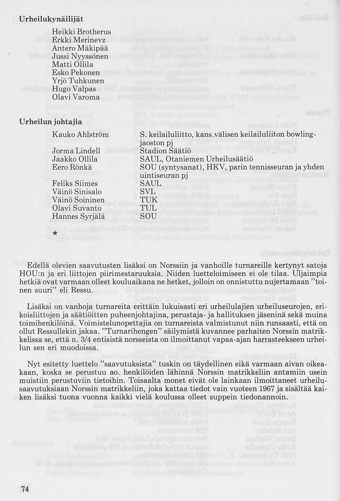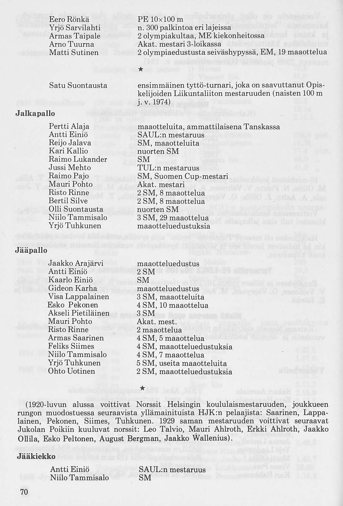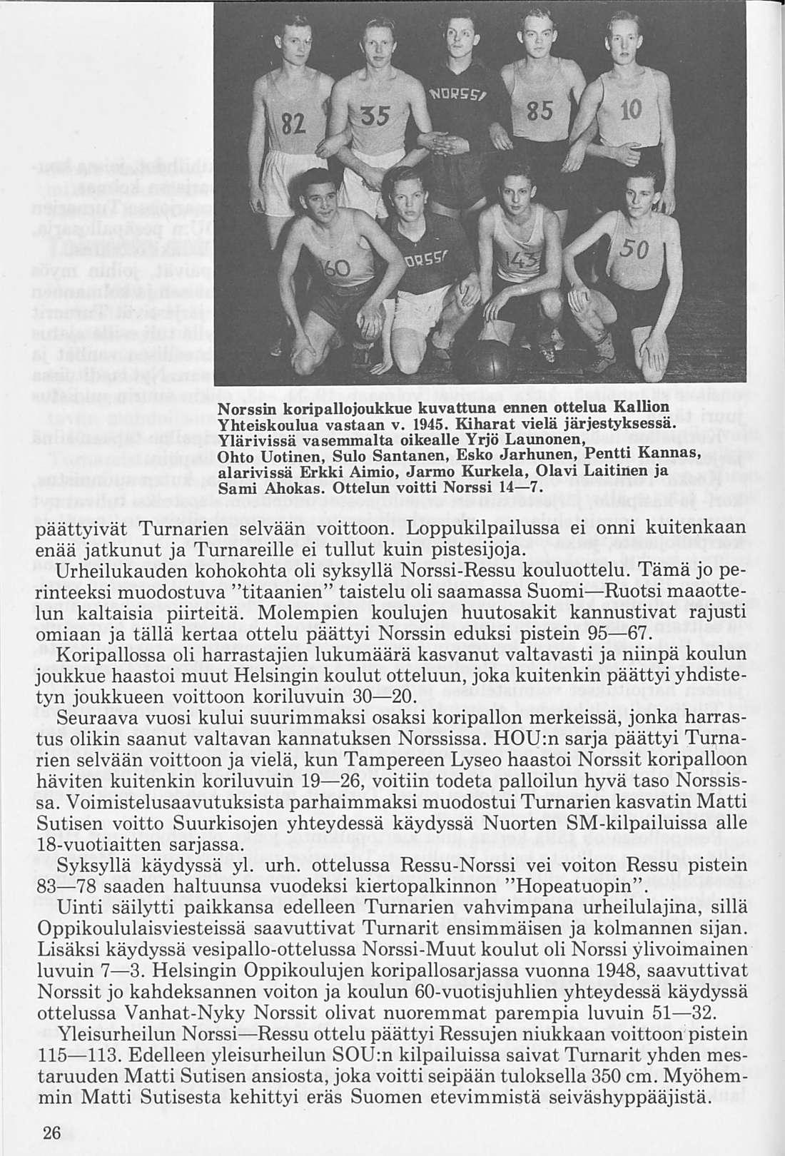 Norssin 10x100 m viestin joukkue, joka syksyllä v. 1925 saavutti koululaisennätyksen 1.56,3. Juoksijat vasemmalta; Arvo Aalto, Vihtori Pore, Tauno Meller, Veikko Valtonen, Olavi Väyrynen, Esko Peltonen, Kaarlo Cajander, Osmo Tuomikoski, Matti Aro ja Eero Rönkä.