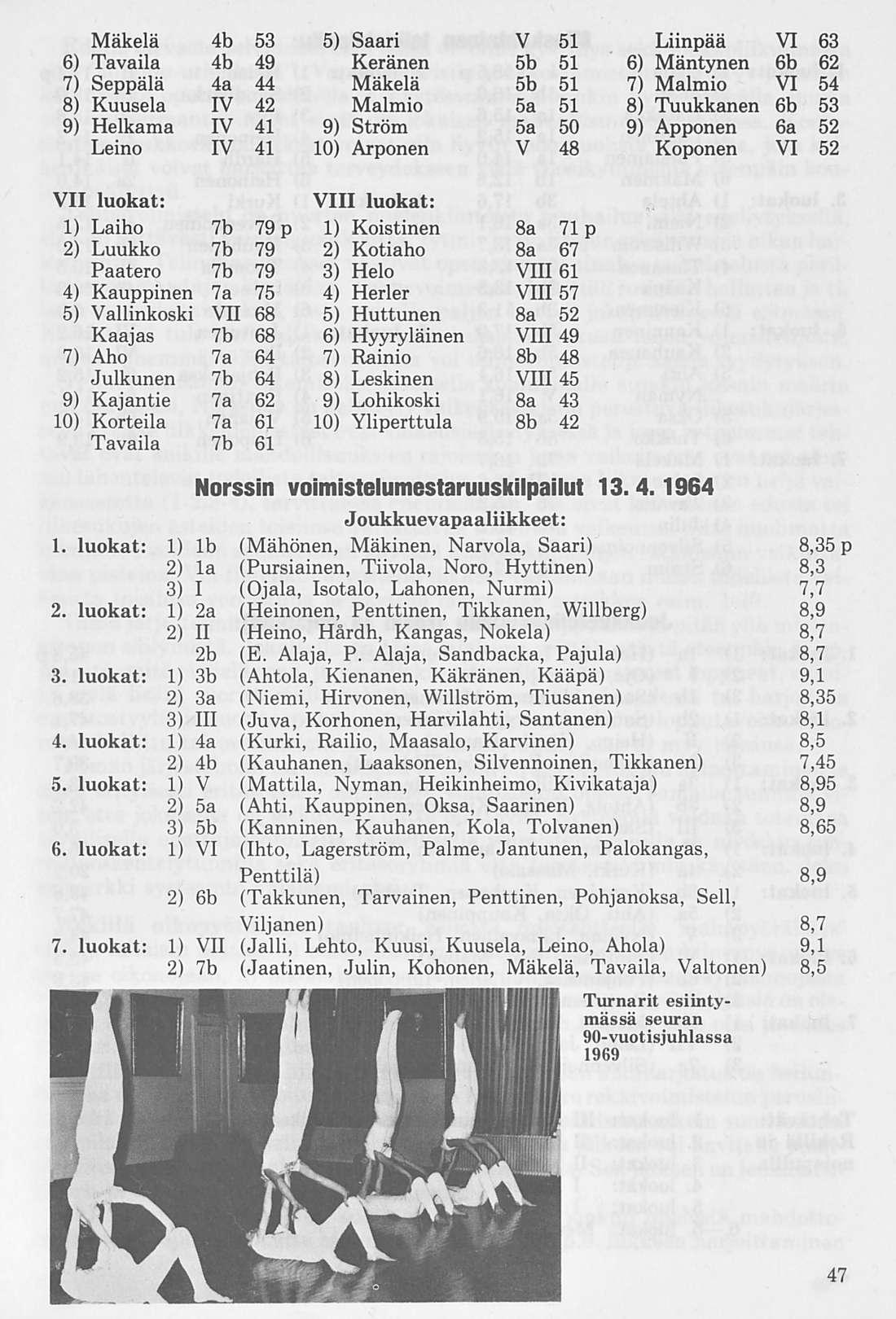 1900-luvun alkupuolella kasvoi voimistelun harrastus Norssissa yhä edelleen. Onnistuneita näytöksiä ja kilpailuja järjestettiin sekä kotipaikkakunnalla että lukuisissa maaseutukaupungeissa. Kuvaavaa tälle laajalle voimistelunharrastukselle oli Wilskmanin suorittama tutkimus, joka osoitti 65 % koulun oppilaista pystyvän tekemään rekillä kipin.