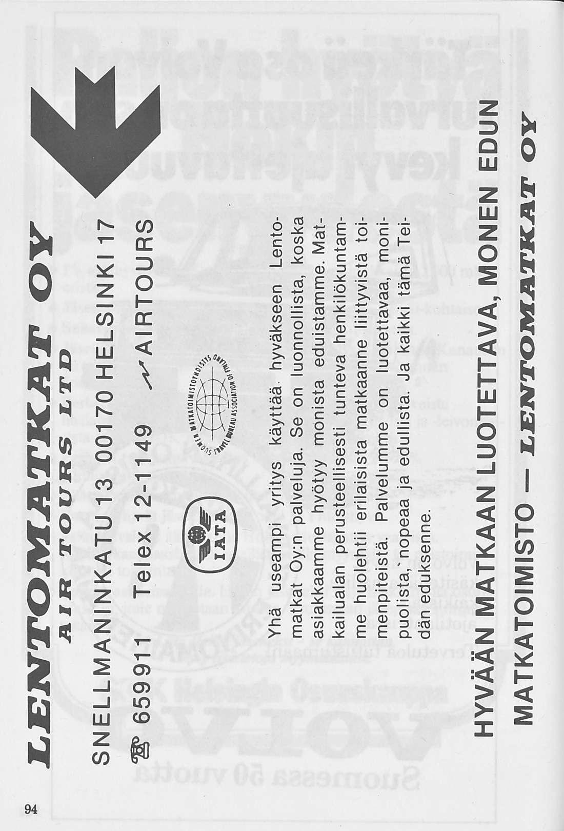 Ratakatu 3, 00120 Helsinki 12, puh. 90-13600