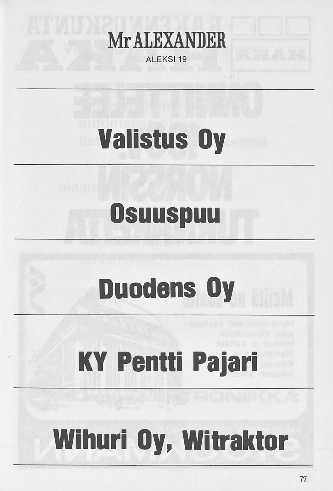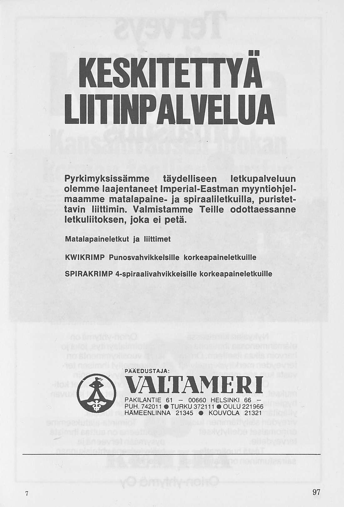 PL 240 00121 Helsinki 12 puh 90-646 018 telex 12-1342 wshki sf