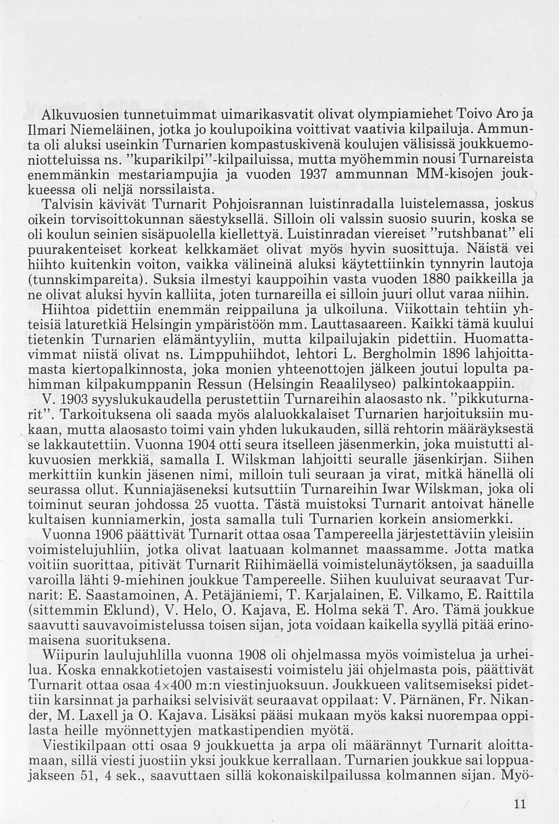 Seuraavien vuosikymmenien yleisurheilijoista (aloittaneet uransa Turnareissa) mainittakoon mm. maailmanennätysmies ja olympiavoittaja Armas Taipale sekä 10-ottelun moninkertainen Suomen mestari ja Antwerpenin olympialaisten keihäänheiton pronssimitalimies Paavo Jaale (ent. Johansson).