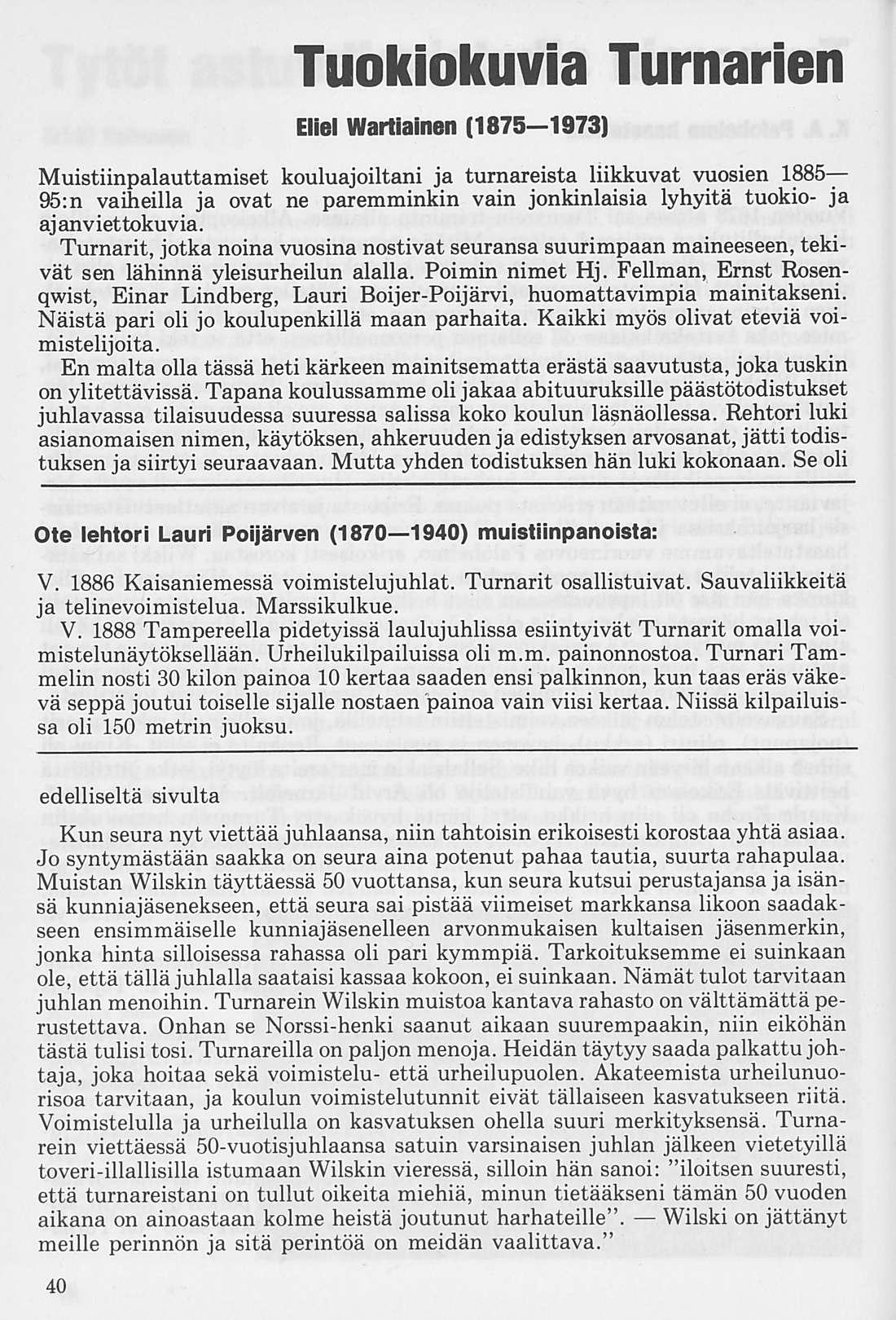 Muisteloita Turnarien vaiheilta