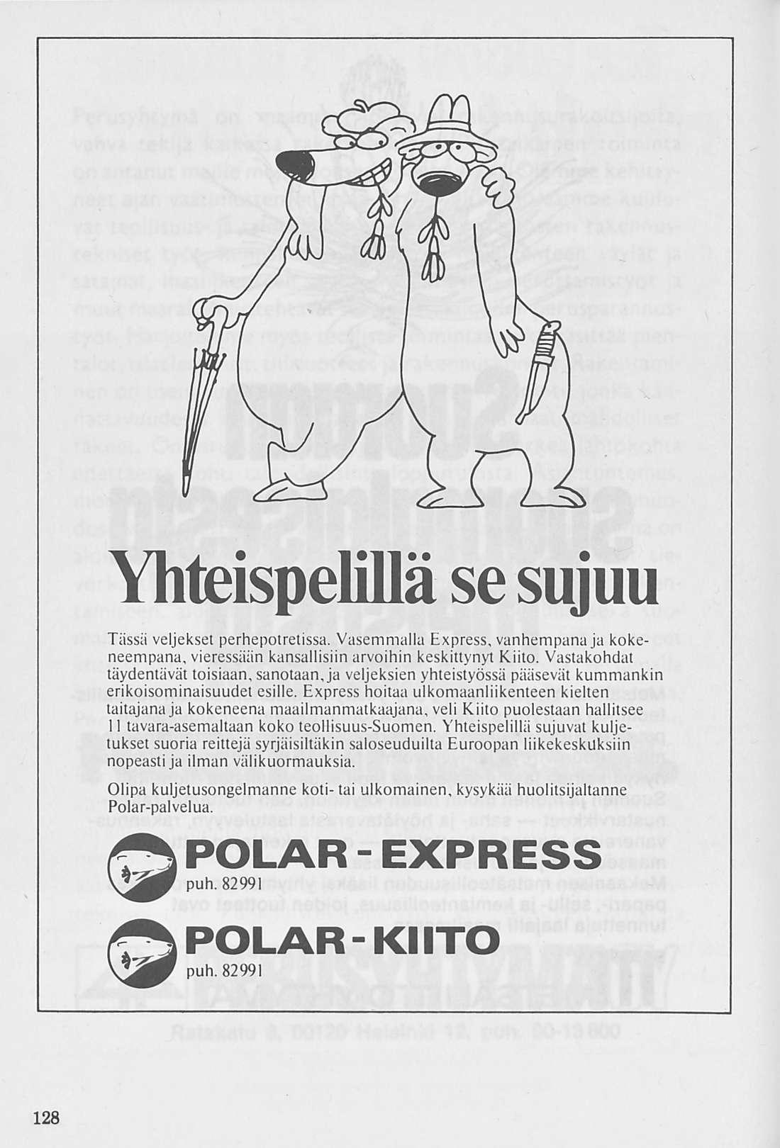 Tässä veljekset perhepotretissa. Vasemmalla Express, vanhempana ja kokeneempana, vieressään kansallisiin arvoihin keskittynyt Kiito, Vastakohdat täydentävät toisiaan, sanotaanja veljeksien yhteistyössä pääsevät kummankin erikoisominaisuudet esille. Express hoitaa ulkomaanliikenteen kielten taitajana ja kokeneena maailmanmatkaajana, veli Kiito puolestaan hallitsee 11 tavara-asemaltaan koko teollisuus-Suomen. Yhteispelillä sujuvat kuljetukset suoria reittejä syrjäisiltäkin saloseuduilta Euroopan liikekeskuksiin nopeasti ja ilman välikuormauksia.
