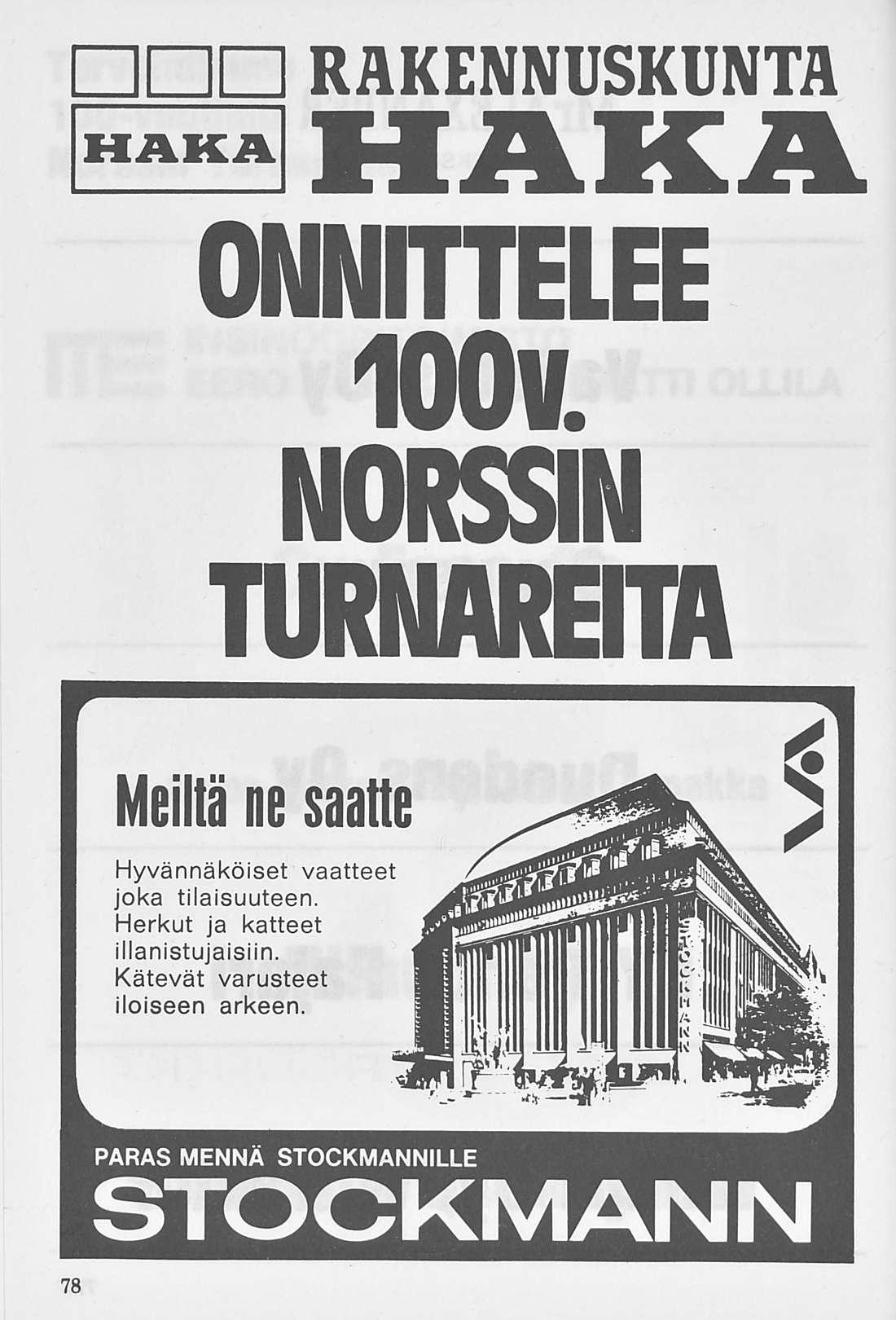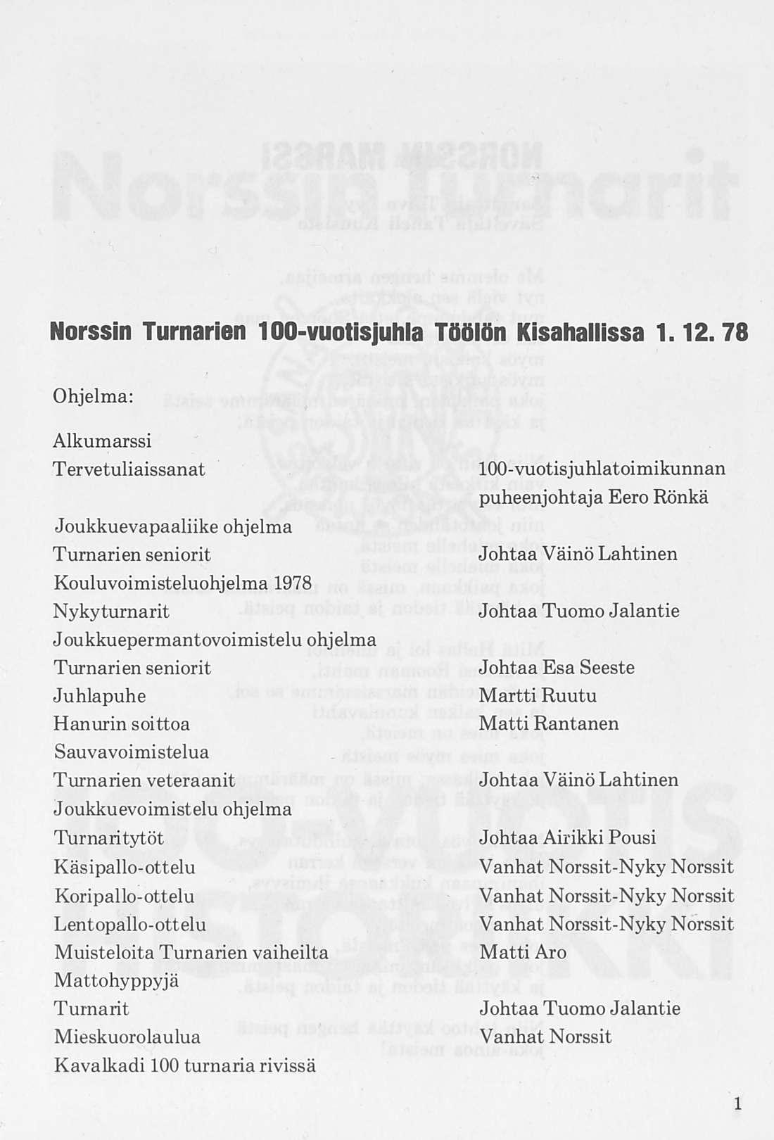 Norssin Turnarien 100-vuotisjuhla Töölön Kisahallissa 1.12.78