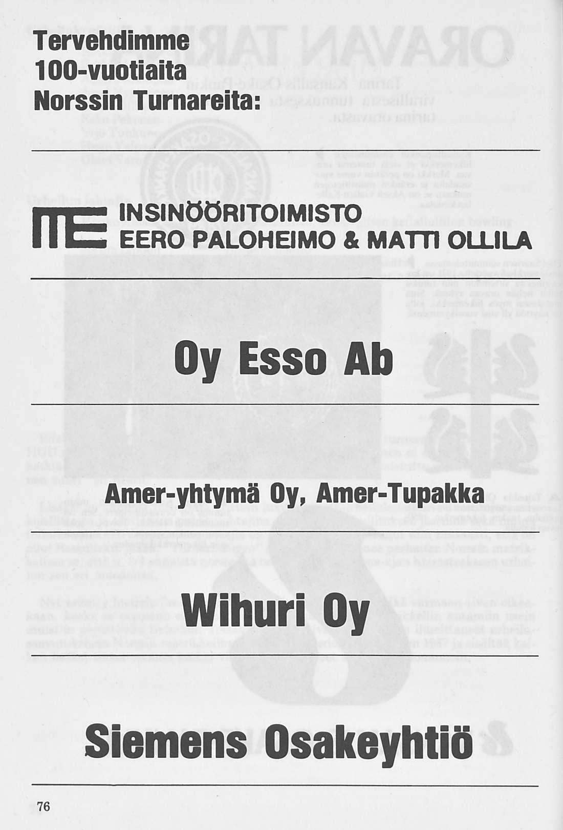 Vanhoja Norsseja ja liikelaitoksia, joiden tuen turvin