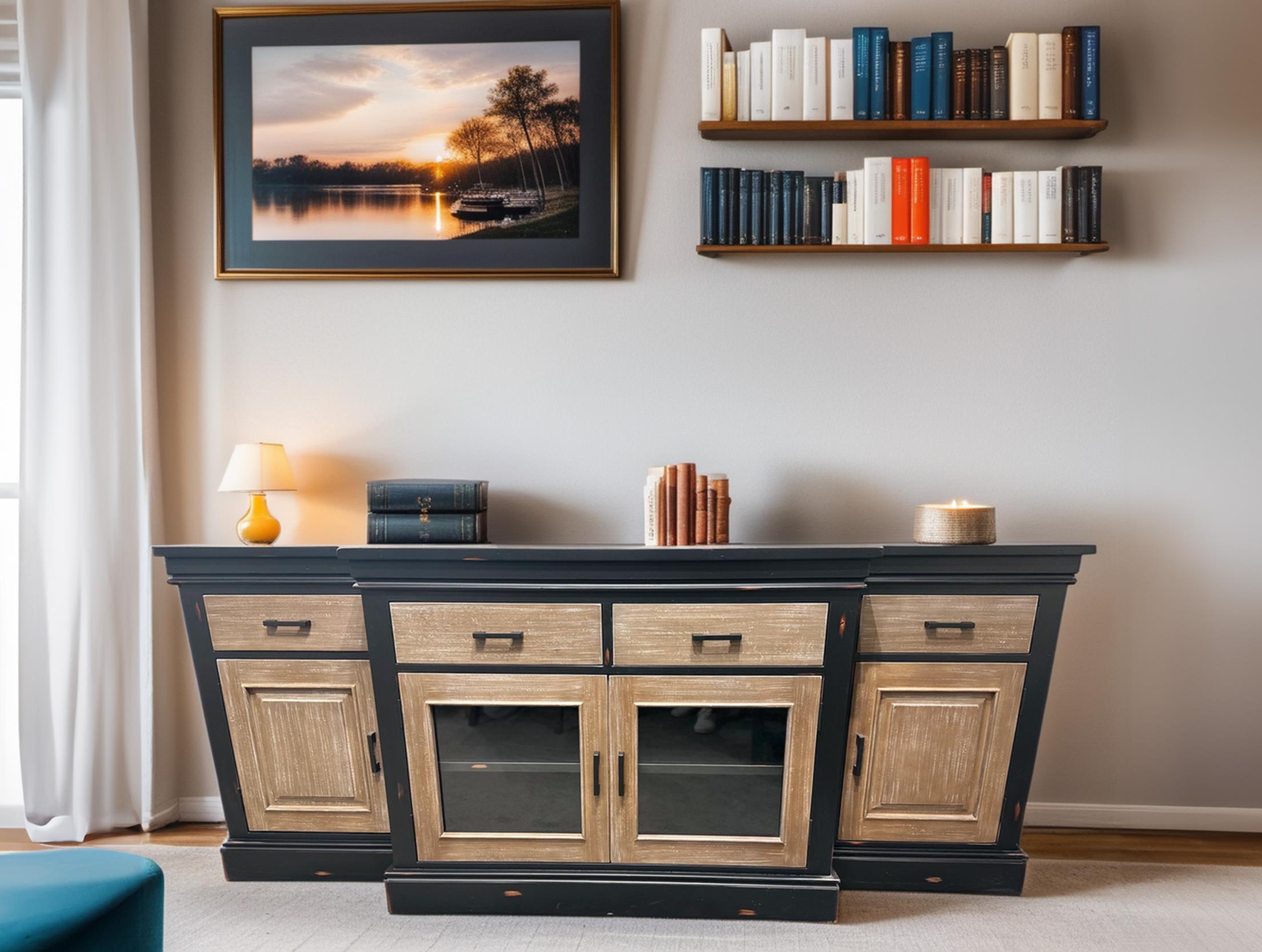 This media chest includes four drawers and two cubbies, providing the perfect blend of storage and functionality for your entertainment needs.