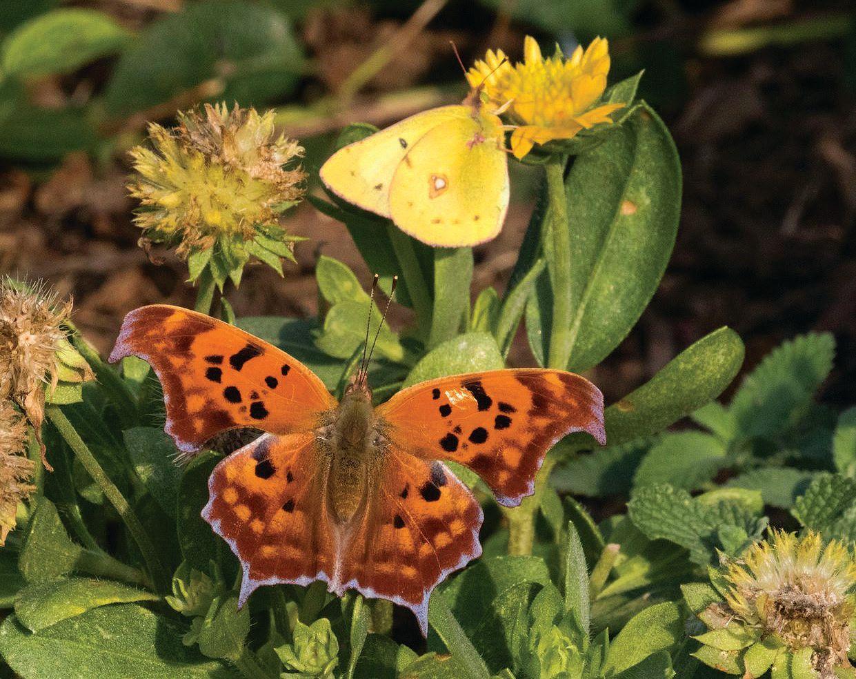 Beth Polvino was able to photograph a Question Mark and a Clouded Sulphur on Nov. 2, in her yard in Cape May Co., NJ.