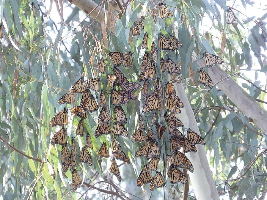 This page, above Monarchs cluster on Eucalyptus trees in Huntington Central Park, Orange Co., CA. Dec 12, 2016.