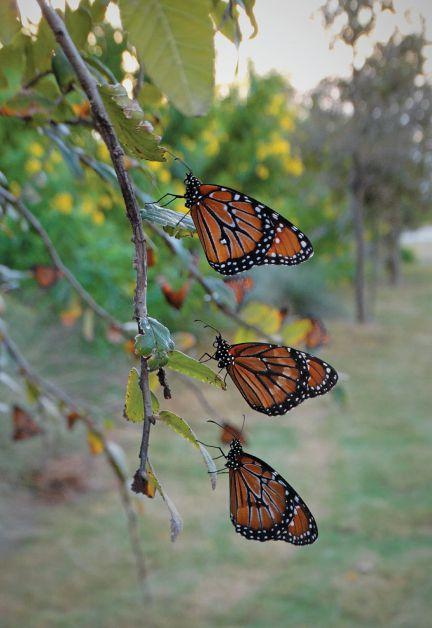 Opposite page Monarchs overwintered at Fort Morgan State Historical Site, Baldwin Co., AL. Jan. 11, 2017.