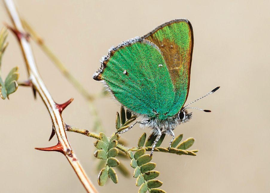 Co., AZ and Tom Palmer photographed a Three-spotted Skipper, expanding its range northward, in Saddle Creek Park, Polk Co., FL. On Mar. 11, Laurel and Dusty Rhodes saw 24 species, including Twin-spot Skipper and Little Metalmark, at the Scherer-Thaxton Preserve, Sarasota Co., FL. Moving west, William D. Beck saw butterflies galore, including Spring Whites, Desert Orangetips, Desert Elfins and Sheridan’s Hairstreak, at the south end of the Spring Mountains, near Goodspring, Clark Co., NV. In Dead Man’s Gulch, west of Lyons, Boulder Co., CO, Venice Kelly had to go several thousand feet down the mountain before she saw some early butterflies, including 11 Hoary Commas and 3 Sheridan’s Hairstreaks. Mark and Holly Salvato found 10 Florida Leafwings (just less than the 11 seen here in Feb.) and 2 Bartram’s Scrub-Hairstreaks in Everglades NP, MiamiDade Co., FL on Mar. 17.