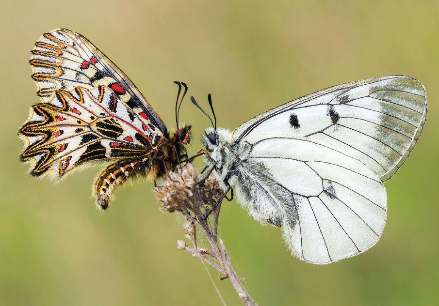 Opposite page bottom: A Mnemosyne Parnassian with a Southern Festoon friend. April 23, 2016. Perbál, Hungary.