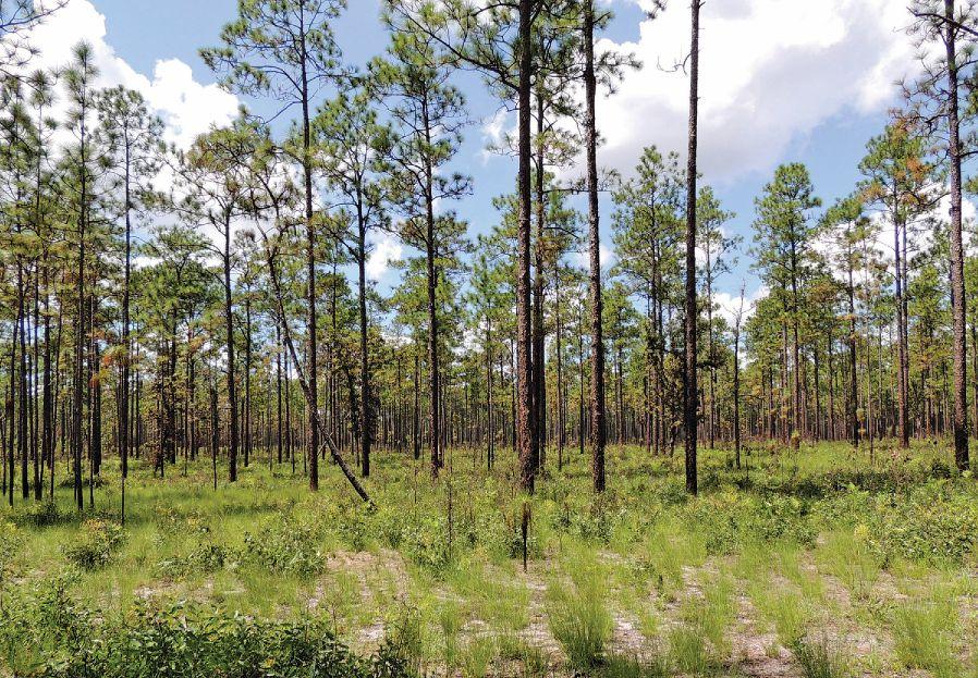 Below: A survey site a few days after a prescribed burn. White rings mark longleaf pine cavity trees used by Red-cockaded Woodpeckers, another threatened species that inhabits Florida sandhills. Mar. 6, 2017.