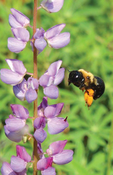 Left: In early spring, Sundial Lupine is one of the most conspicuous flowering plants in sandhills and is a popular nectar source for many insects such as this carpenter bee. Apr. 5, 2015.