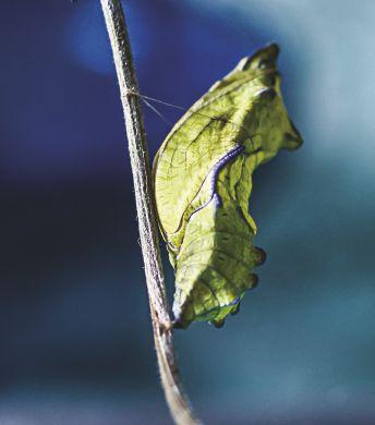 Special weaponry: Pipevine Swallowtail caterpillars sequester aristolochic acids from their food plants. These toxins protect them from predators through the rest of their life cycle, from caterpillar to pupa to butterfy, and even to the eggs of the next generation. The thick outer layer of the caterpillar’s exoskeleton resists damage from pecks and bites while releasing a bitter-tasting liquid that is an efective deterrent to attackers.