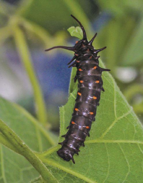 Pipevine Swallowtail caterpillars feed on many plants in the genus Aristolochia (Dutchman’s Pipe). While there are many native Dutchman’s Pipe species to choose from, many of the tropical Dutchman’s Pipes are toxic to Pipevine Swallowtail caterpillars, although females may lay eggs on these species.