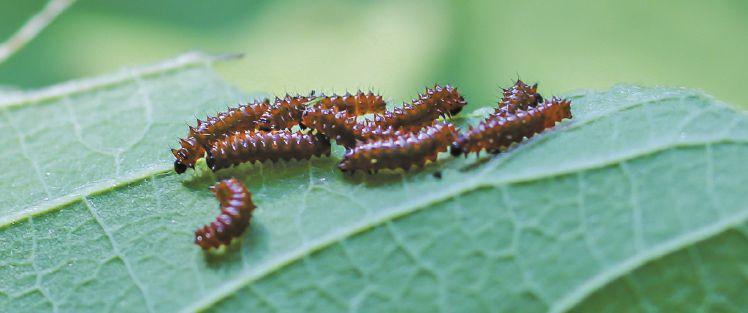 The caterpillars are quite gregarious in the early stages of development. They hang out in groups, subscribing to the “safety in numbers” philosophy of defense.