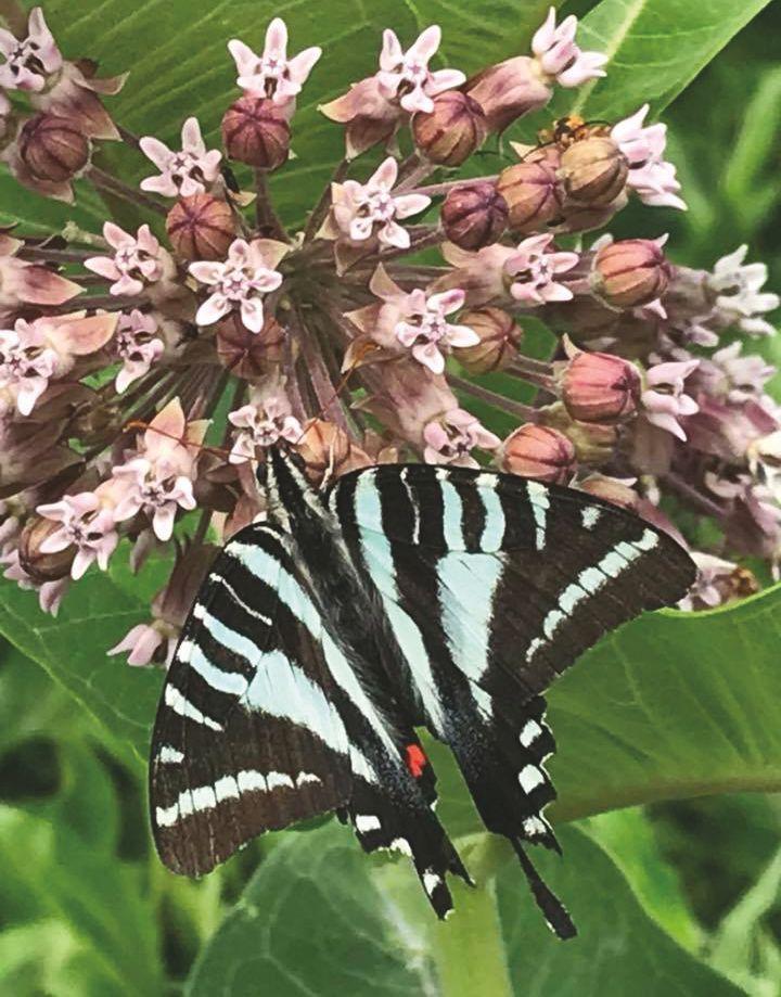 You have planted Common Milkweed (Asclepias syriaca) in your garden or on your property after discovering that milkweed is critically important to helping the Monarch butterfly population because it is the only food source for their caterpillars. Yet little did you realize that Common Milkweed blossoms have a heavenly scent and provide nectar for a host of other butterflies, plus native bees and other pollinators. It’s unfortunate that these wonderful flowers are in bloom for only a few weeks before starting to set seed—and once seed sets, the plant’s foliage also starts to lose its vibrancy. Wouldn’t it be nice if you could enjoy the plant’s dramatic foliage, the flowers’ heavenly scent, and all of the pollinators they attract and feed, for months instead of a few short weeks. Well, with some welltimed interventions, you can!