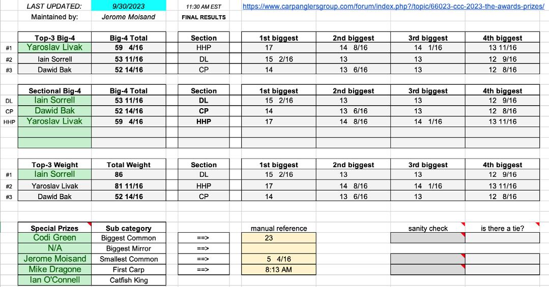 Our thanks to CarpAngler.com for generously supporting the prizes for the North American Champion and Carp King and also Carp Bait USA and Deeper Sonar for the donations to the CAG CCC Raffle which raised over $340