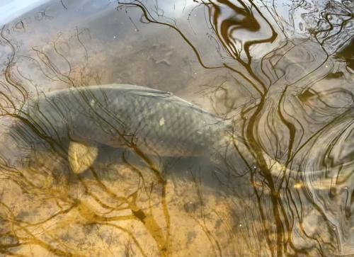 After a few walks around, a couple of us spotted large ghosts, a few mirrors and plenty of other neat fish sunbathing and doing some pre - spawning rituals. It had been a very hot week & they were very close. (They made a few attempts to start later in the day.) We spent the day catching up, meeting new people & watching the fish.