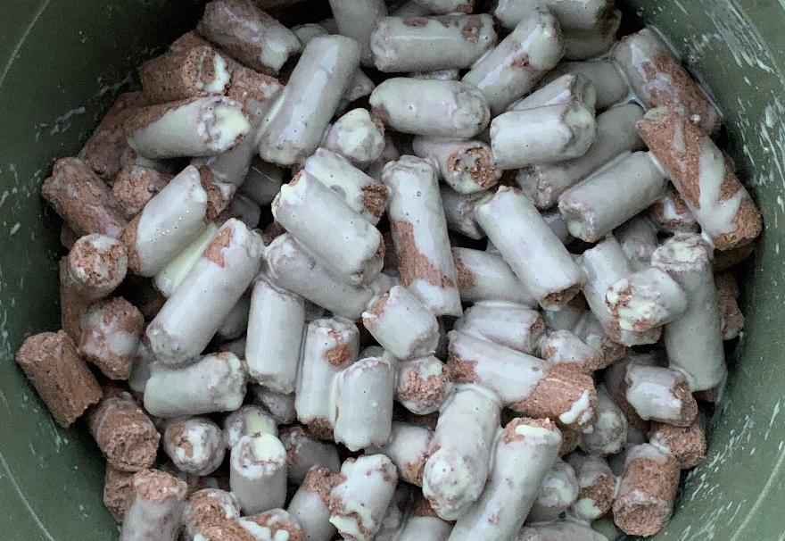 Coating them with a vegetable or fish oil can significantly reduce the rate of breakdown but it can also mask the base attraction and aroma of the feed or pellet.