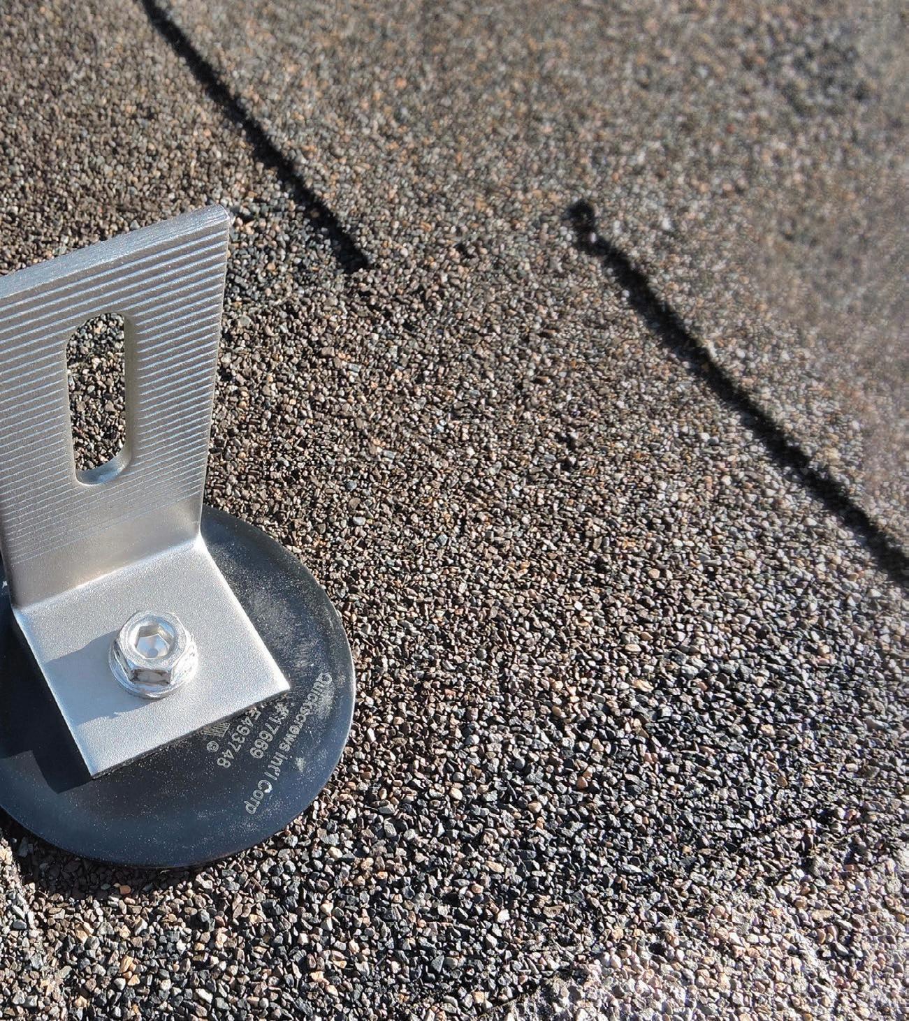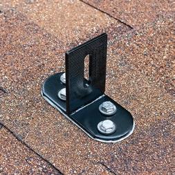 This Flashing Kit comes with four 2'' self-drilling screws and can be mounted on the OSB Roof Sheathing (7/16'' min.). This Flashing can be mounted at 48'' centers with snow loads and wind loads of up to 5.4KPa and 2.4KPa respectively. The raised channel provides a place for sealant application on the underside while also diverting water off the top of the flashing. Made from lightweight, malleable aluminum, the flashing can easily be formed around gables or troughs. The textured, powder-coated flashing blends well with all asphalt roofs. The baseplates can be secured to the roof with up to four self-drilling screws and have a separate blind stud on top for L-Bracket attachment, eliminating the through-holes that may cause water leakage and lead to dry rot. It easily slides under shingles during installation.