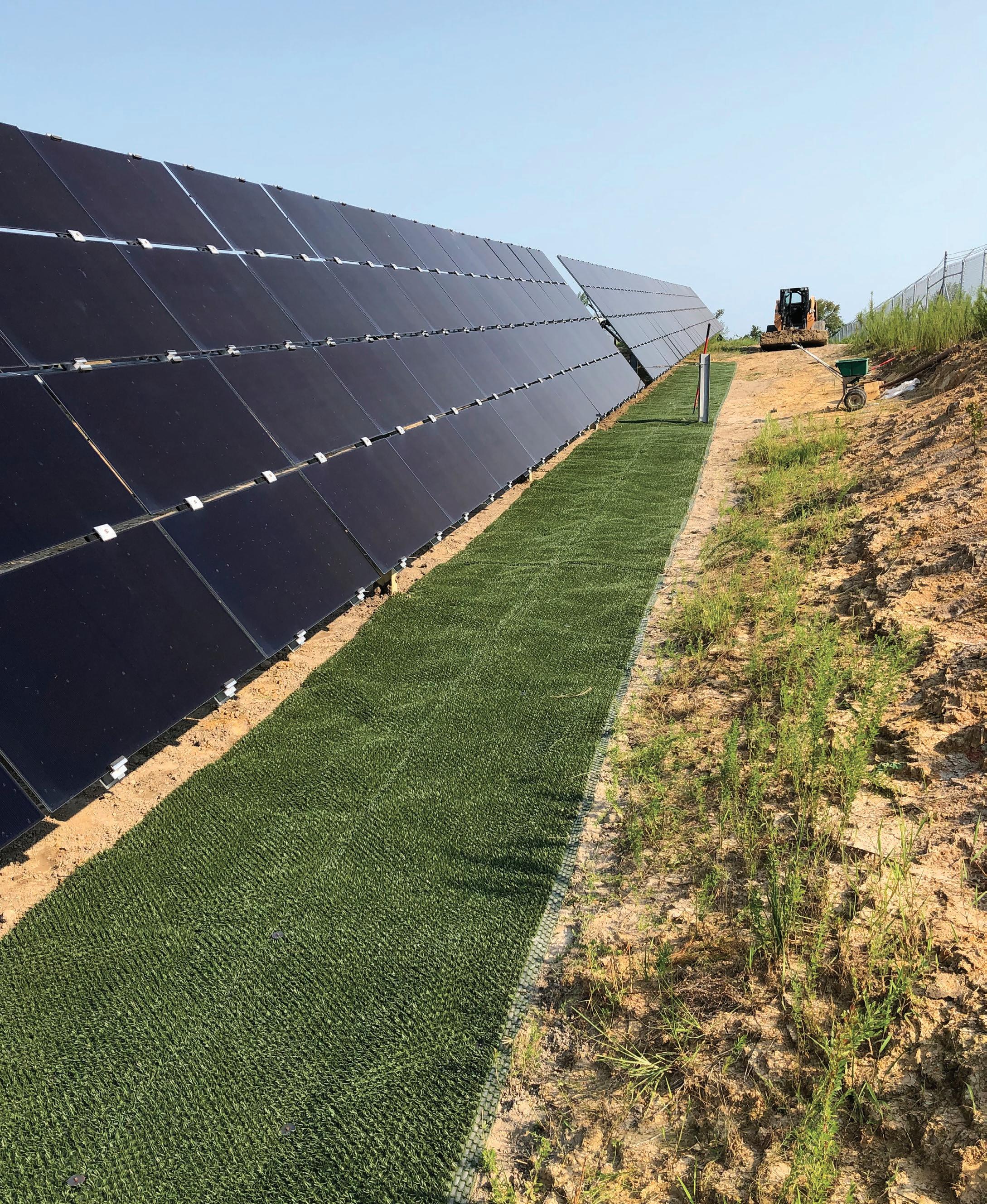 There are many choices for vegetation management. Once established, native grasses generally have low water usage, are durable, pollinator friendly, choke out other invasive plants, and grow low to the ground to keep shading low. This makes for low maintenance vegetation, but it’s expensive to establish and takes several years of careful management at the start. Once established, however, the maintenance costs drop significantly. Sheep can be a great option if the site is in an area with sheep farming and has fresh drinking water available. Mowing and herbicides can be effective, but expensive. Mowing can break PV modules by throwing rocks. Herbicides work well but may have environmental impacts or be prohibited. Be sure to also consider how overgrown vegetation may damage trackers, modules, cabling, switches, and electrical enclosures.