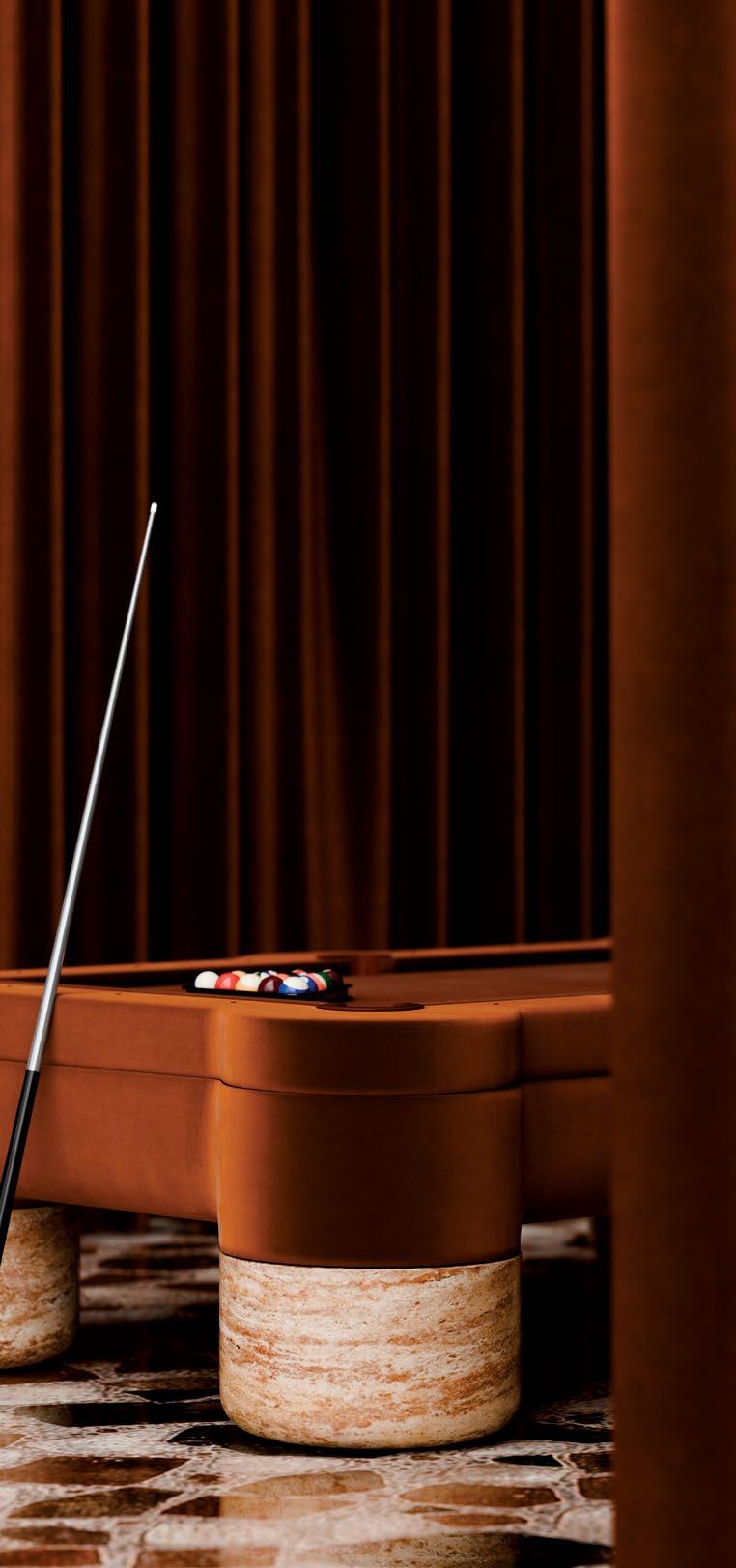 COMMUNITY SPACE The Club is where residents can relax over billiards and shuffleboard, watch movies and sports on the big screen, and entertain friends in a private dining room.