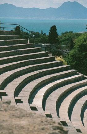 The feeling of being suspended between worlds stayed with me. On the afternoon that Mohammed showed me the Roman forum, he also took me to the ancient amphitheatre of Carthage—still a busy cultural venue hosting concerts and festivals—which is almost a perfect mirror of the theatre in Taormina. As we walked up the steps, past the ruins of the neighbourhood where the Roman patricians had their villas, Mohammed and I admired the commanding view of the sea. It seemed yet another perfect place for catharsis, and an ideal vantage from which to contemplate the layers of time. n