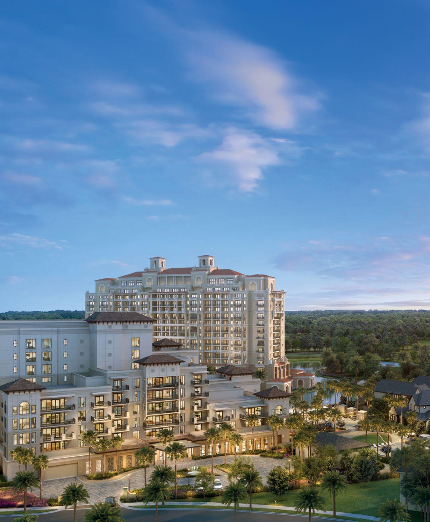ON THE WATERFRONT An infinity pool 300 feet wide will overlook an especially beautiful bend in the lake. On the lakefront, residents will have access to the Lake Clubhouse, a private marina, and boat slips, as well as the property’s fully electric watercraft.