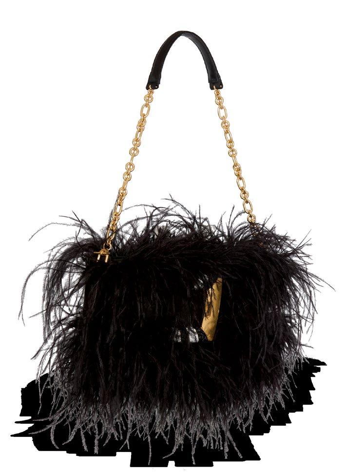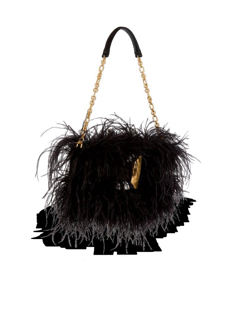FERRAGAMO Soft-Bag in leather and mink-effect shearling