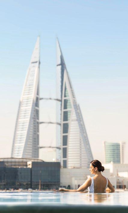 POOL TIME With impressive vistas of Four Seasons Hotel Bahrain Bay and other Kingdom landmarks, the residential pool deck is an ideal spot for a