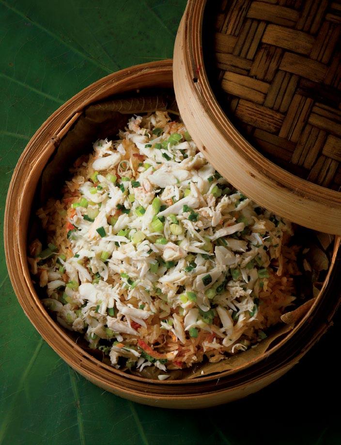 Chairman restaurant in Hong Kong is renowned for its crab dishes, such as sticky rice that pairs steamed crab with tiny pink shrimp.