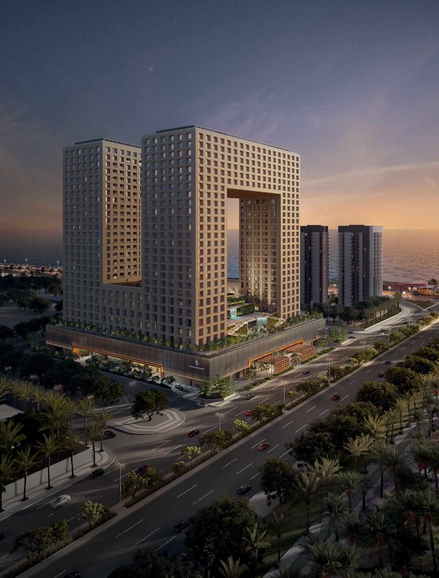 CONNECT A pedestrian-only bridge connects the Private Residences to the offerings at Four Seasons Hotel Bahrain Bay, among them a white-sand beach, a waterpark for kids, a sanctuary spa, and Wolfgang Puck restaurants.
