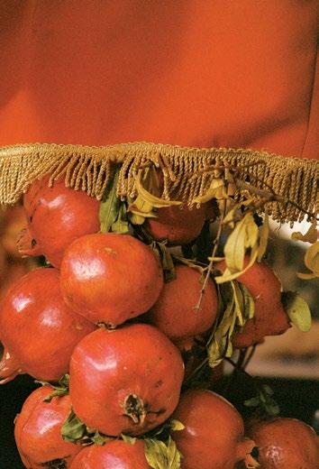 EXPLORE In Sicily, pomegranates (above left) grace a food stand near the Ancient Theatre of Taormina. Above right: A Mediterranean view from a balcony at Four Seasons Hotel Tunis.