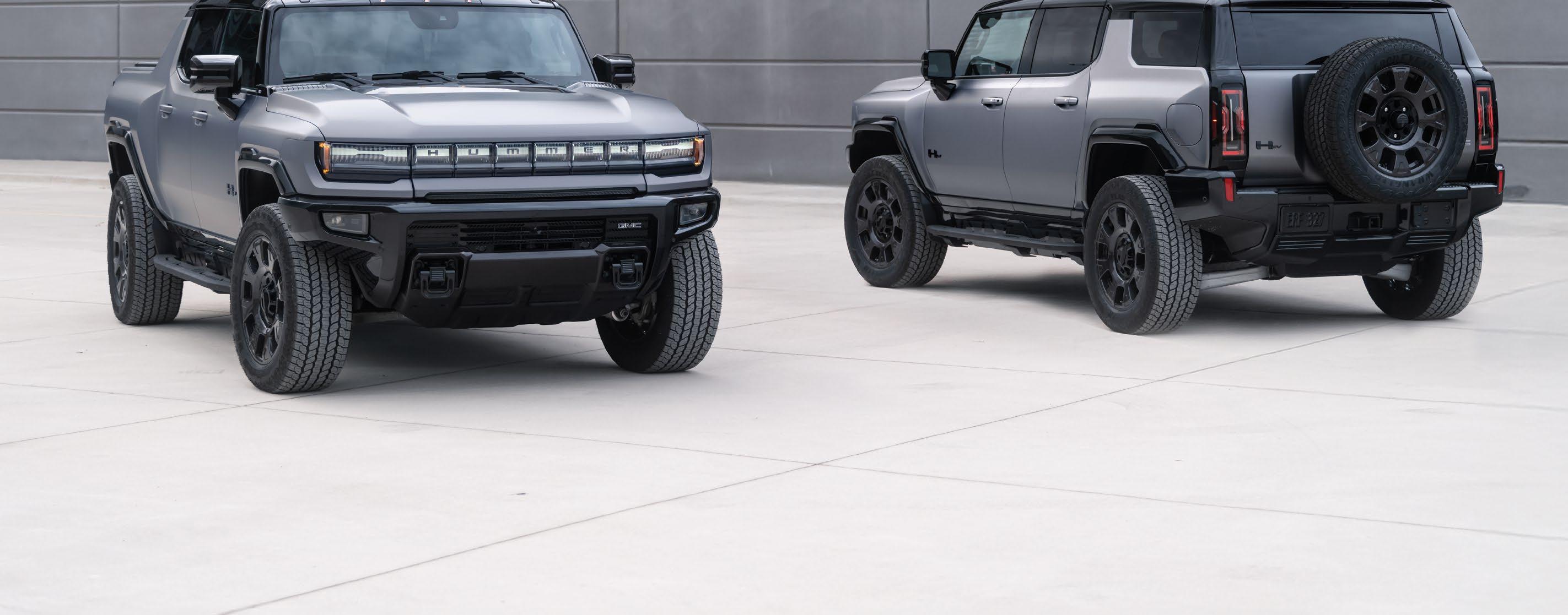 2026 GMC HUMMER EV is available from a GMC EV dealer. *Compared to full-size SUVs with two-wheel steering. **Always pay attention while driving and when using Super Cruise. Always use Super Cruise in accordance with local laws. Do not use a hand-held device. Requires active Super Cruise plan or trial. Terms apply. Visit gmc.com/connectivity-technology/super-cruise for compatible roads and full details. ***On 3X SUV without the Extreme Off-Road Package on a full charge. GM Estimated range based on development testing and/or analytical projection consistent with SAE J1634 revision 2017 – MCT. Range subject to change prior to production. Actual range may vary based on several factors, including ambient temperature, terrain, battery age and condition, loading, and how you use and maintain your vehicle.