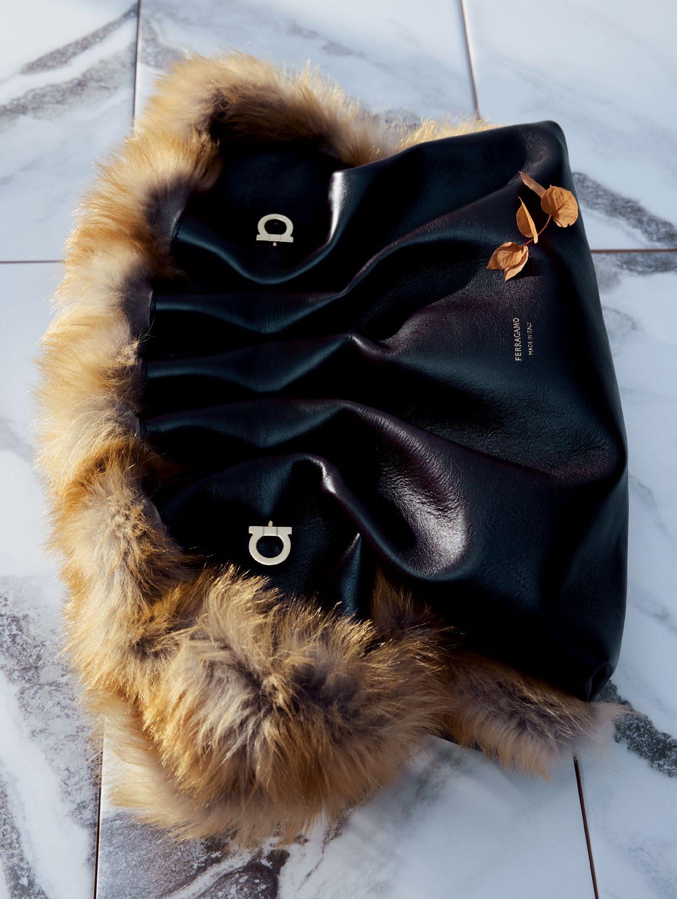 FERRAGAMO Soft-Bag in leather and mink-effect shearling
