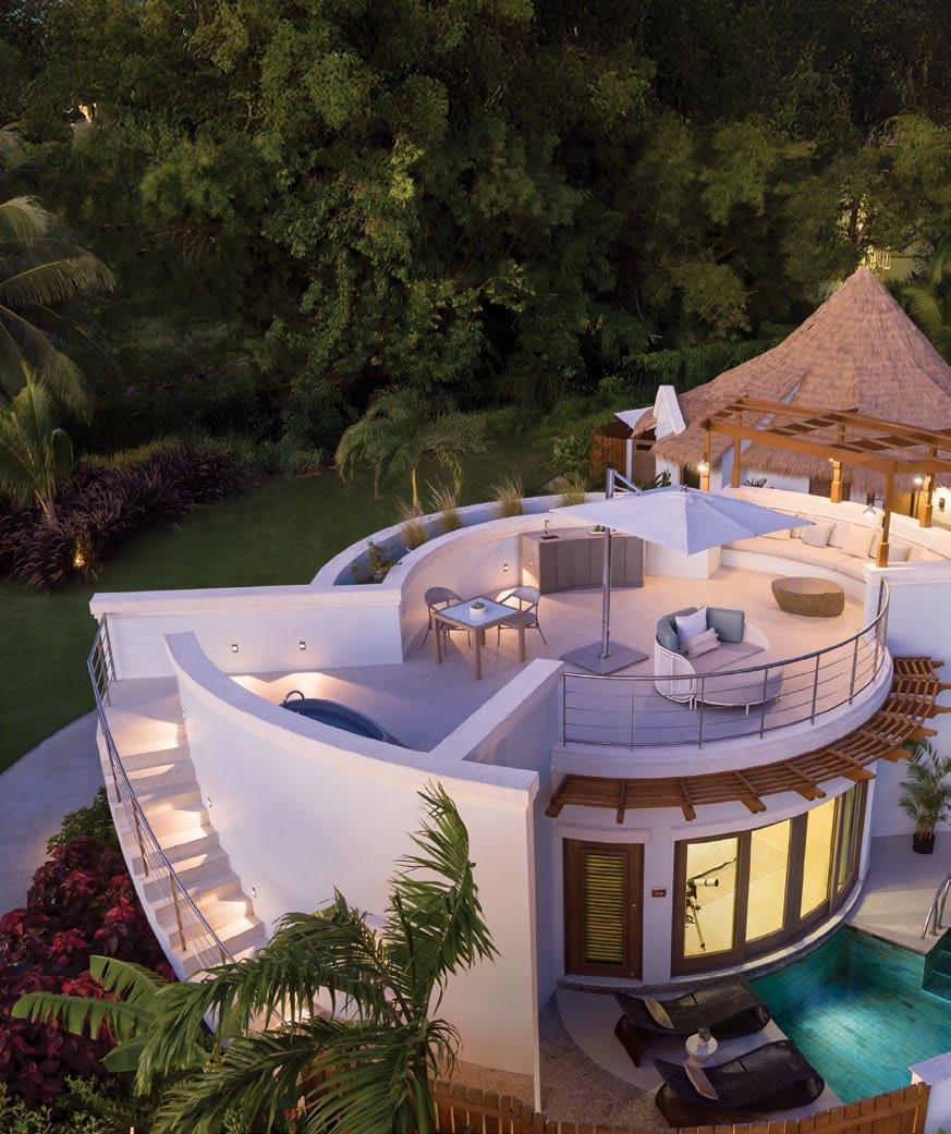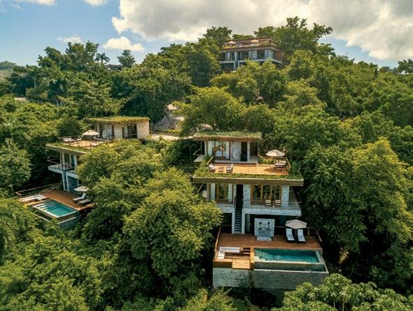 At the time of writing, five jungle-view villas were available, each exceeding 5,000 square feet of living space and providing three bedrooms and three full bathrooms. The other five residences offer four to six bedrooms, range from 8,200 to nearly 10,000 square feet, and have spacious outdoor areas with infinity pools.