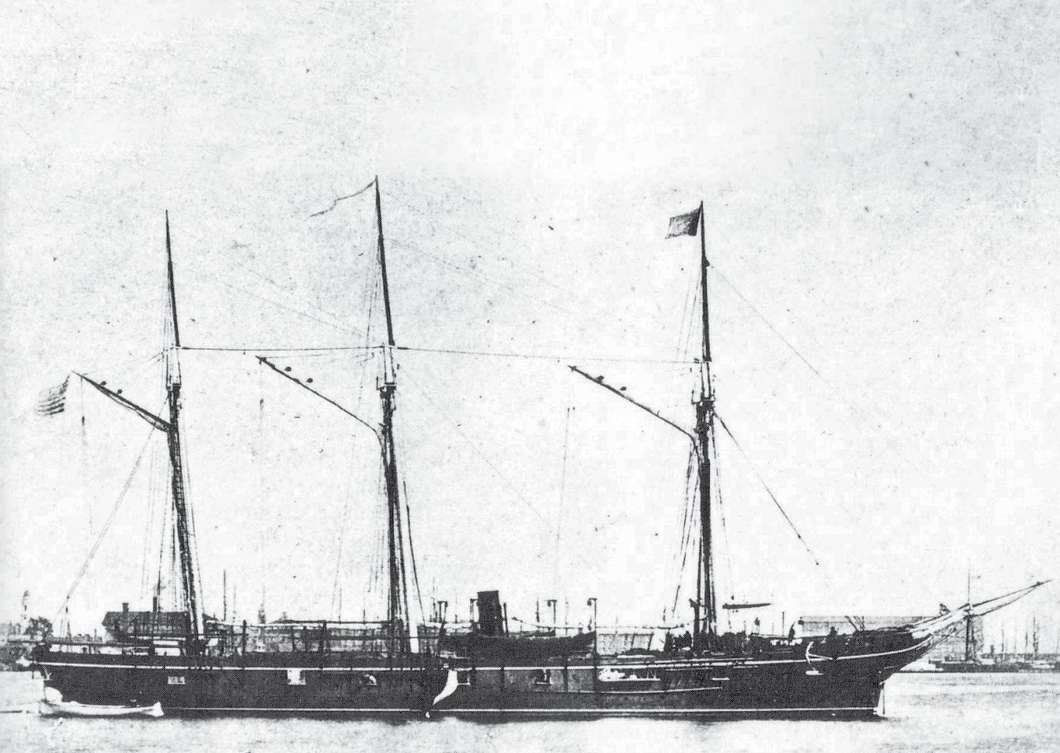 ?The USS Huron was built in 1875 and met its watery end just two years later in 1877. The ship had a beam of 32 feet and a length of 175 feet – and along with two sister vessels, it was one of the last U.S. naval ships built with iron rather than steel, and one of the last to be equipped with three sails to supplement the five coal-burning boilers that fueled its steam engine.