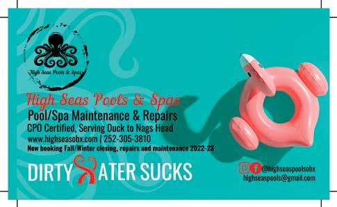 Join a class or book a private session at this NEW waterfront studio overlooking Marshes Light. O ering yoga classes in the morning and evening, special events and reiki. Sign up online for a class, private yoga or reiki session, or community reiki session! 7 207 Queen Elizabeth Avenue 252-473-4800 lighthouse-obx.com