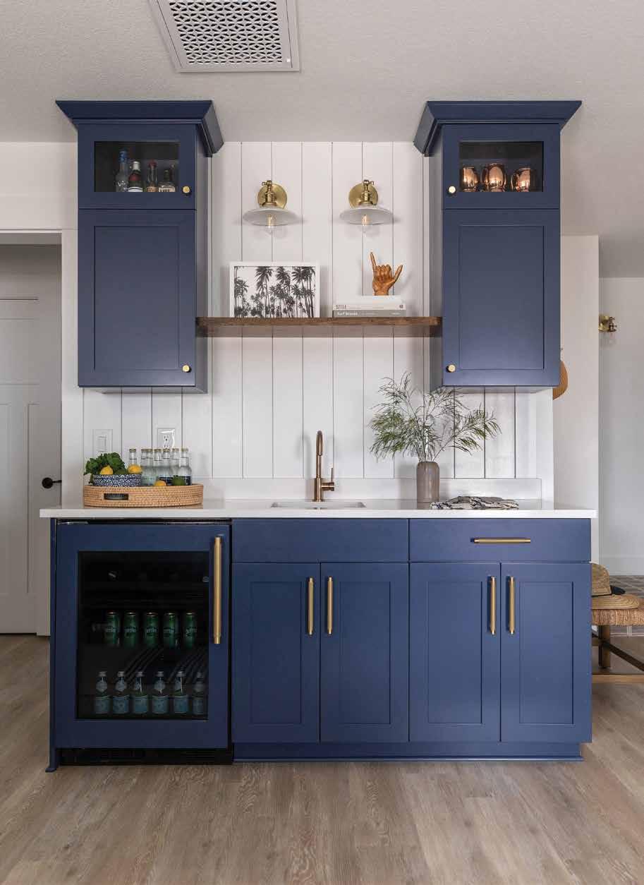 FOR BICOASTAL INTERIOR DESIGNER ERIN HANDRON OF SURFSIDE HOME CO., working simultaneously on projects in both San Diego and the Outer Banks is simply part of her normal routine. But while both locations – and her individual designs – tend to have their own unique sets of challenges, there’s one constant: Erin’s inspirations always start with her clients. For this remodel, her clients were a young couple who had just relocated to Kill Devil Hills with the Coast Guard – giving Erin the chance to transform a small, underutilized area of their home into a comfortable bar-side gathering space that’s equally fun and functional.
