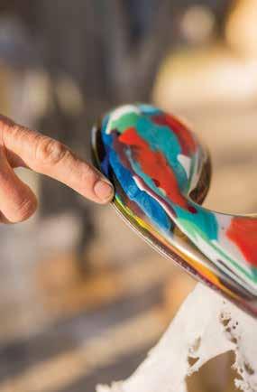 while applying acrylic paint patterns. For more decorative and elaborate works, it’s virtually impossible to estimate how many hours he might dedicate to each piece –and just as challenging to put a price tag on them.