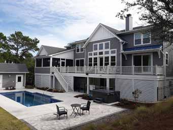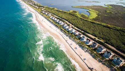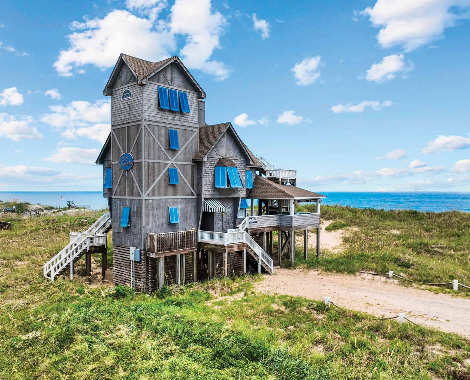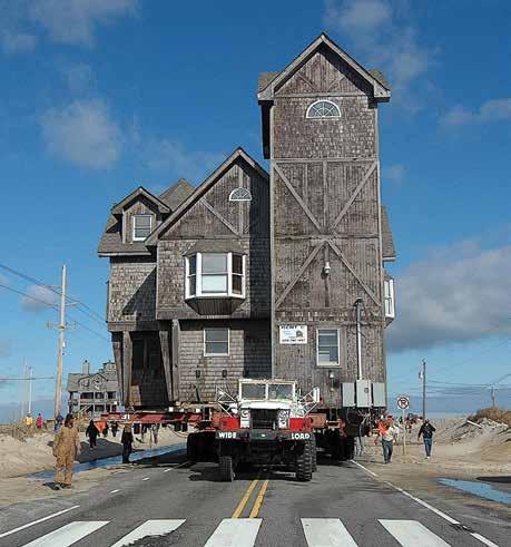 Since being rescued from almost certain destruction in 2010, the Inn at Rodanthe has undergone several large-scale renovations to make it look more like it appeared in the 2008 film Nights in Rodanthe – including revamping its cozy firstlevel living room and redecorating its kitchen with plenty of cinema-inspired details (far left, from top to bottom; photos courtesy of Surf or Sound Realty). Saving Hatteras Island’s most nationally recognizable home also involved physically relocating it – a feat which was accomplished by Virginia Beach-based Expert House Movers in January 2010 amid much local fanfare (photo courtesy of Don Bowers).