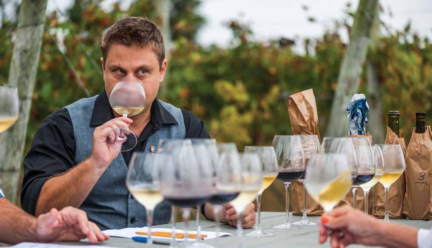 Pictured here, clockwise from top: Simon Kaufmann sips a glass of wine at Sanctuary Vineyards in Jarvisburg alongside Sharon Huttemann, Dan Lewis and John Wright – who were then the Outer Banks’ only four certified sommeliers (Winter 2017, photo by Brooke Mayo). The elite group of rescue swimmers who operate out of Elizabeth City’s Coast Guard Air Station are always on call to help those who find themselves in trouble at sea (Fall 2018, photo by Cory Godwin).