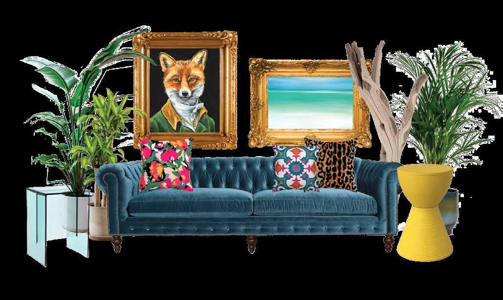 Just as maximalism and minimalism can go handin-hand, so can a mix of vintage staples with modern remodeling – but you shouldn’t feel as though you have to fill your home with pricy new furniture to stay up with the latest trends. Instead, keep your existing classic patterns, like pinstripes and chevrons, but combine them with dazzling colors like fuchsia or sunflower yellow for a newer look. Even on a budget, this is relatively easy to do by pairing bold animal-print pillow covers with an otherwise plain sectional or using a thick, funky gold frame to hang a classic art print. Maximalism is all about contrasts, but adding to the décor you already own means that you don’t have to go overboard too quickly – unless you want to, of course.