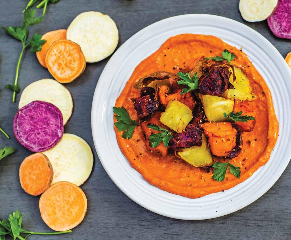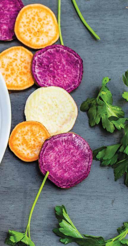 STYLED BY CHEF DAN LEWIS / PHOTOS BY BROOKE MAYOSWEET POTATOES ARE AS AMERICAN AS APPLE PIE – and just as delectably decadent in some cases. But in North Carolina, a side of sugary casserole isn’t all they’re good for. In addition to being simply packed with everything from potassium to vitamins A and C, this root vegetable is an agri cultural powerhouse: With approximately 350 commercial sweet potato farmers