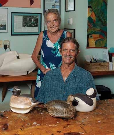 Artistically, Vic followed in his father’s footsteps by largely concentrating on making duck decoys, but after teaching Ellen how to carve during their early years together, she decided to venture into shorebirds because she enjoyed them more. Day after day, month after month, year after year, they’ve sat beside each other, carving, painting and selling their work until it’s time to repeat that cycle all over again.