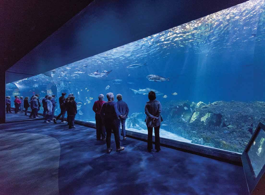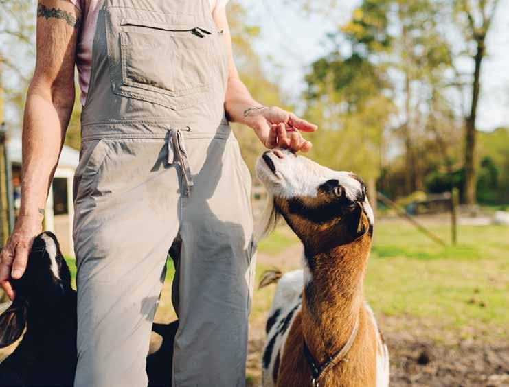 Pictured here, from top to bottom: Not many people can say they’ve swum underneath the belly of a shark – unless they’ve had that experience of a lifetime at the North Carolina Aquarium on Roanoke Island (Winter 2014, photo by John McCord). In a wooded corner of Kitty Hawk, resident goat-whisperer Roxanne Dorman tends to her herd of peanut-loving kids at Panda’s Paradise Farm (Summer 2021, photo by Elizabeth Neal).