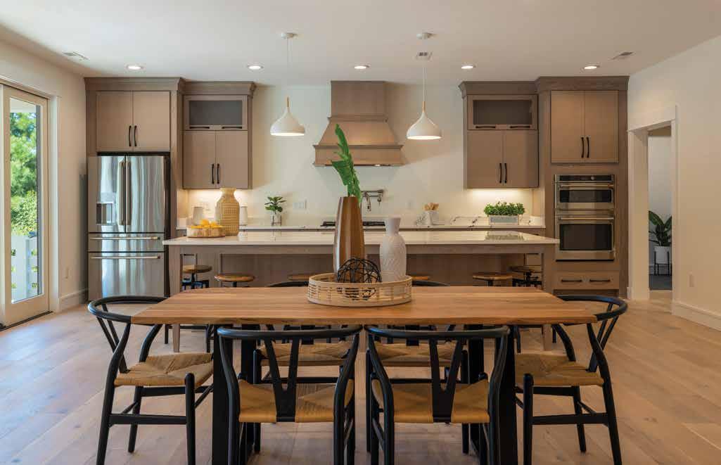As avid home cooks themselves, a “dream kitchen” was always part of the Belvins’ goal. With a number of luxurious details such as a commercial-grade range hood over a black gas-powered cooktop, the next step was to deliver a fully functional island masterpiece, complete with a dishwasher and wine cabinet. Stan also decided to equip the island’s overhang with free-floating legs – rather than enclosing that space – in order to further emphasize the room’s comfortably open theme.